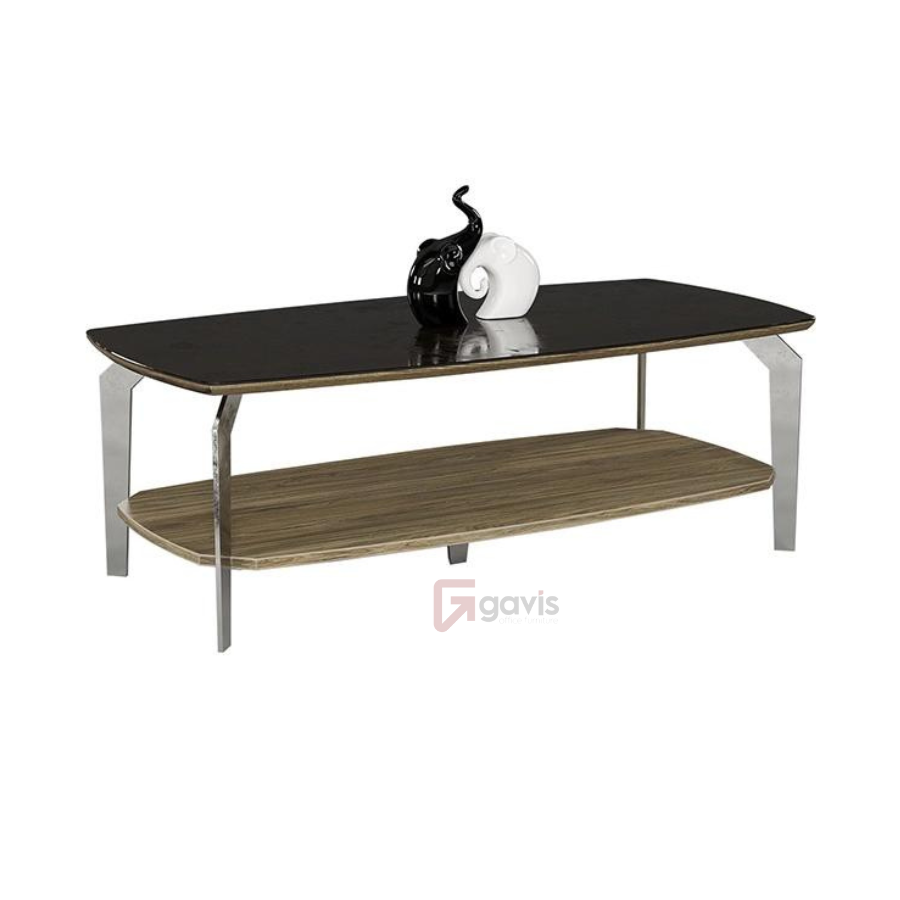 – Chất liệu: Mặt gỗ công nghiệp veneer phủ sơn PU kết hợp kính. Chân mạ