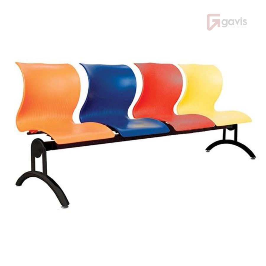 Chất liệu: Khung thép sơn. Đệm tựa nhựa. Ghế 4 chỗ, không tay vịn